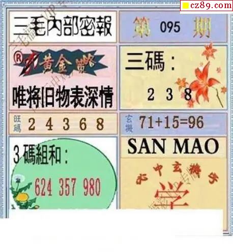三毛图2026095期3d图谜