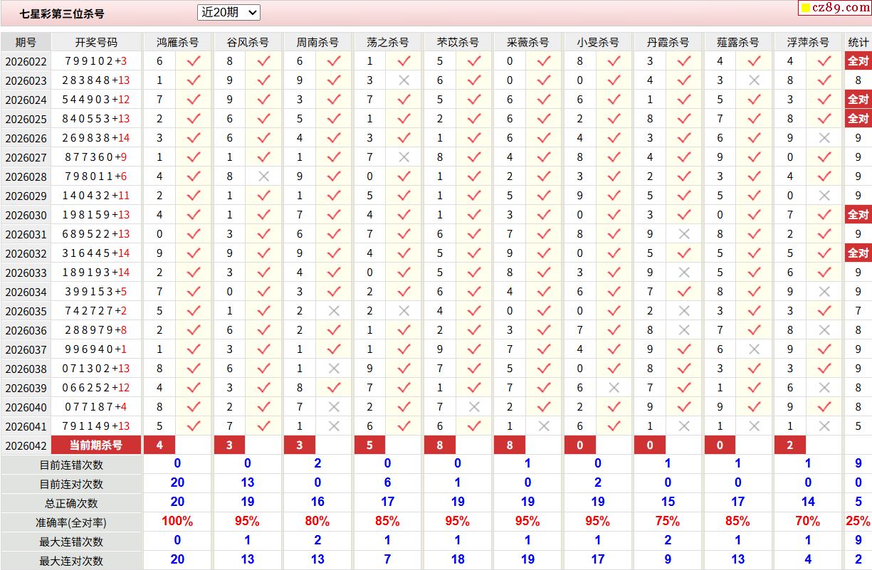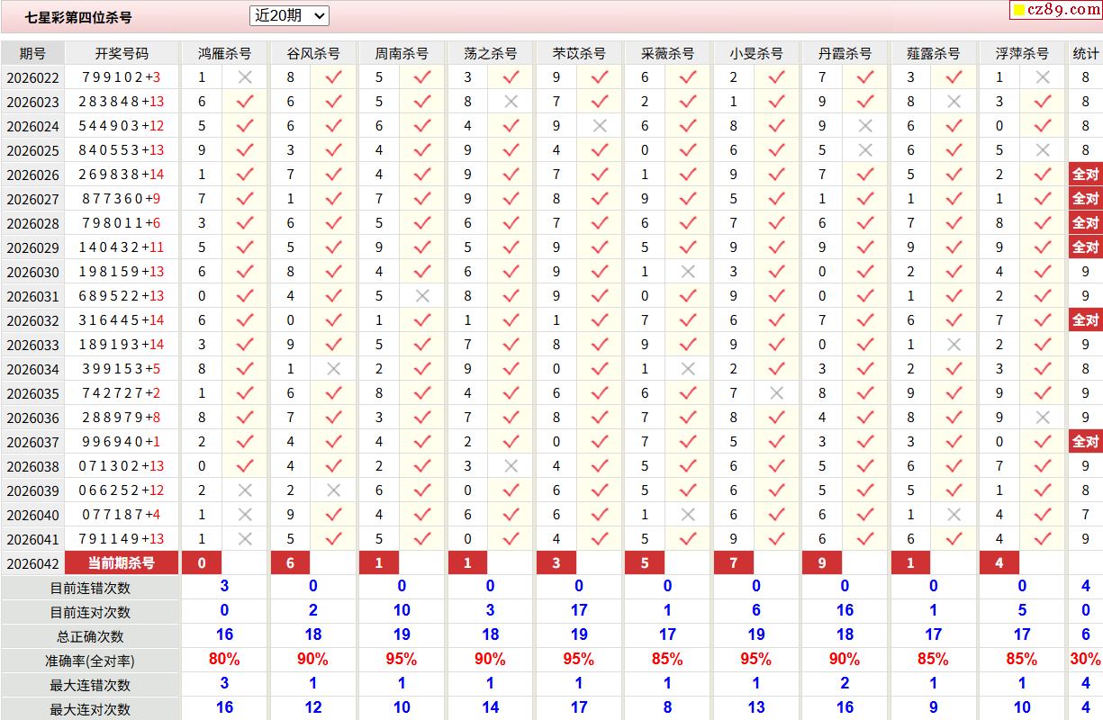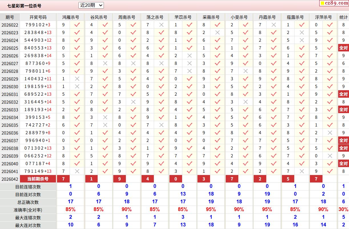 042期彩票专家体彩七星彩定位杀号图表