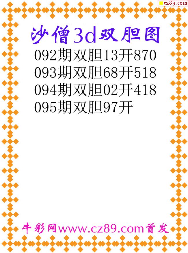 沙僧双胆26095期3d原创图谜