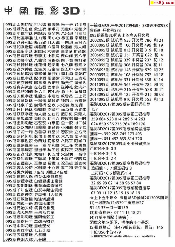 杀手+鑫马快报+字迷汇总26年095期3d图谜