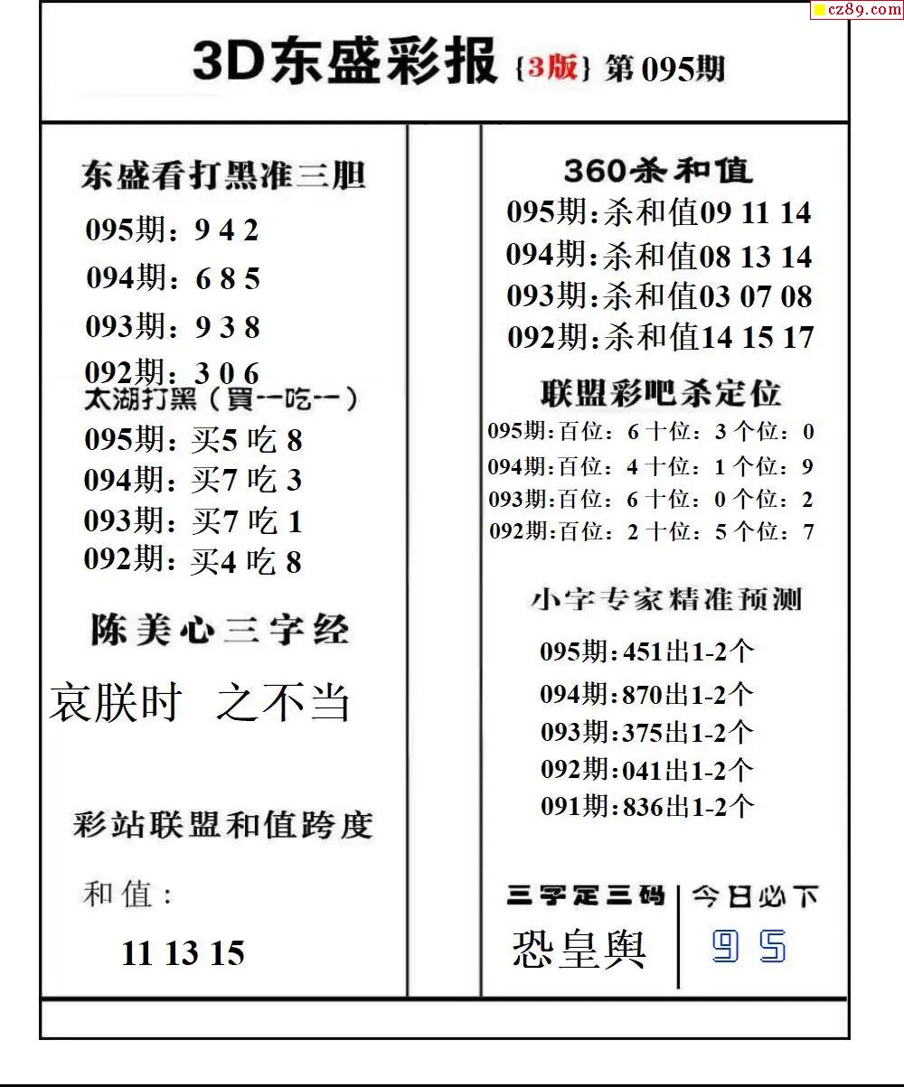 福彩3D2026095期东盛彩报+精品三毛会员版