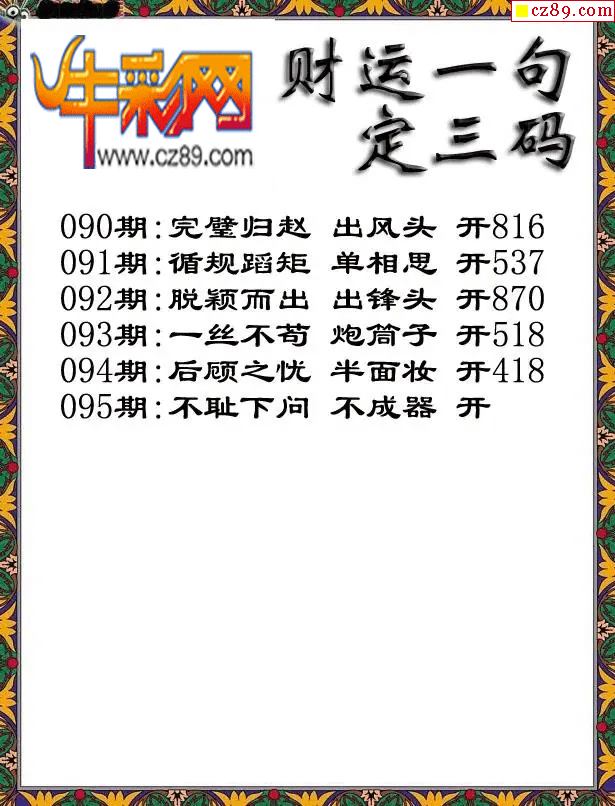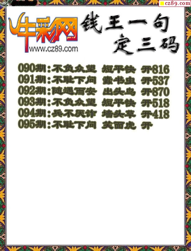 牛彩版3D字谜彩报图26年095期打印版