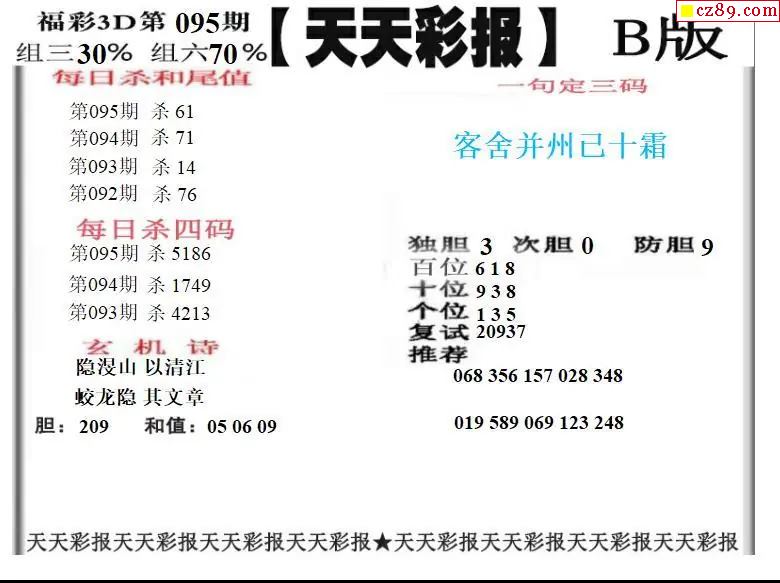 2026095期福彩3D图谜汇总