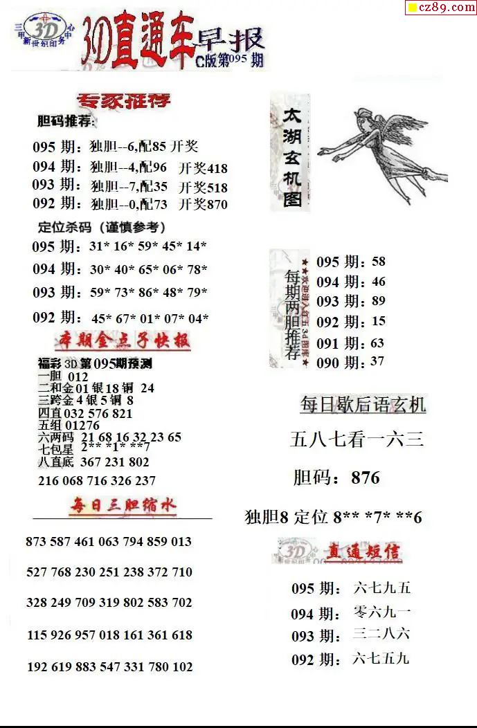 2026095期解太湖3d字图迷汇总报