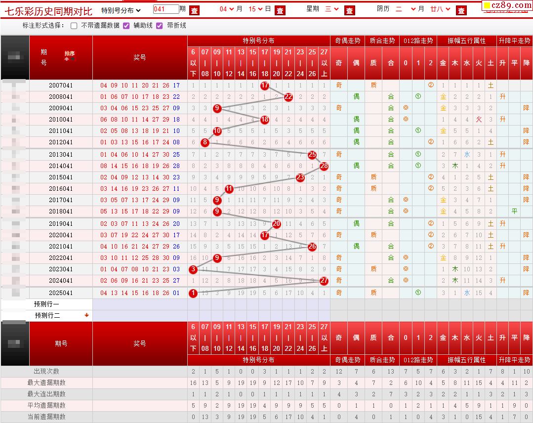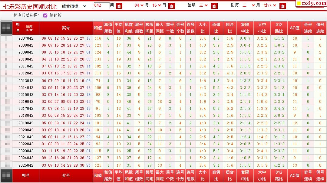 042期七乐彩历史同期对比图
