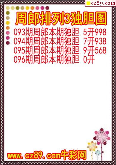 26年096期周郎排列3独胆图