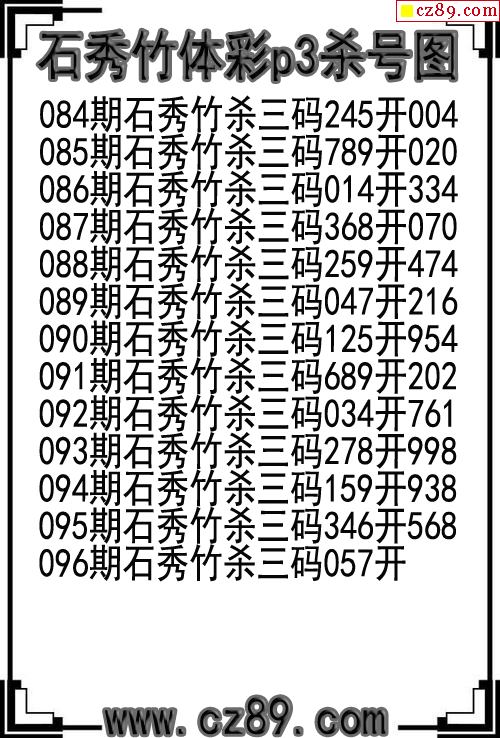 26年096期石秀竹体彩p3杀号图