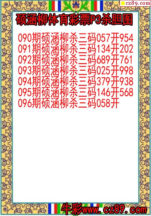 26年096期常君体彩排3杀码图