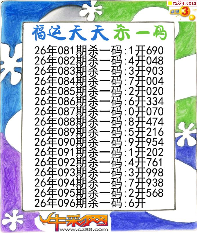 福运天天杀一码096期体彩P3图谜
