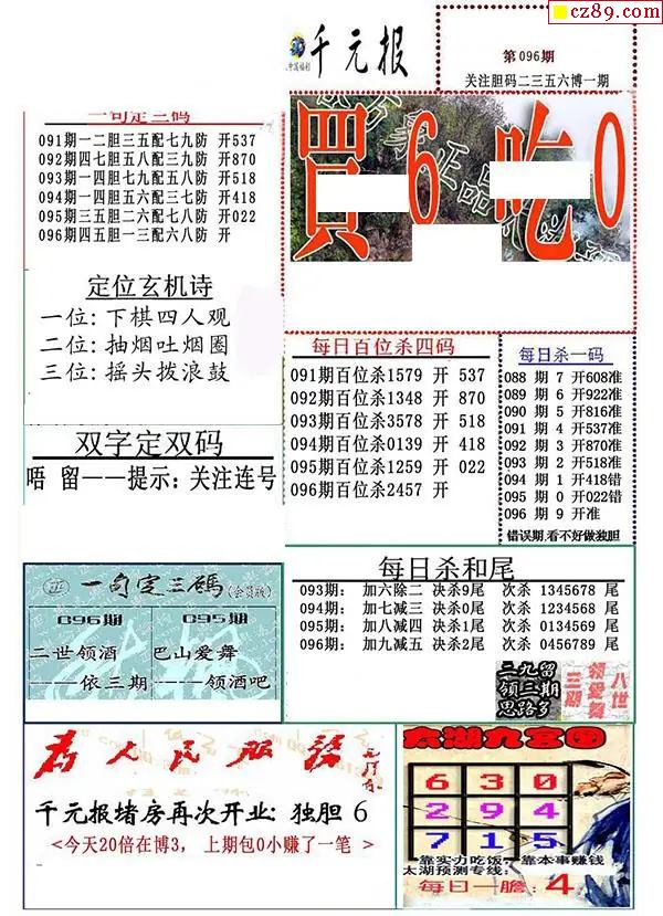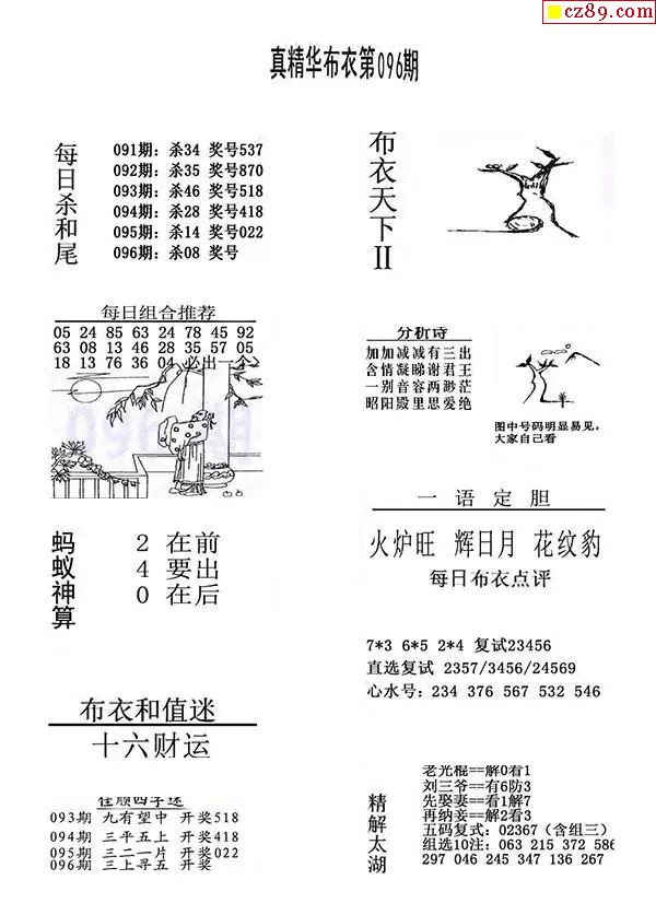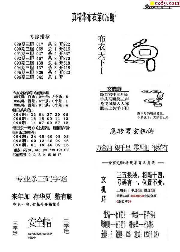 福彩3D2026096期 祁连牧哥百财纳福胆码图谜推荐