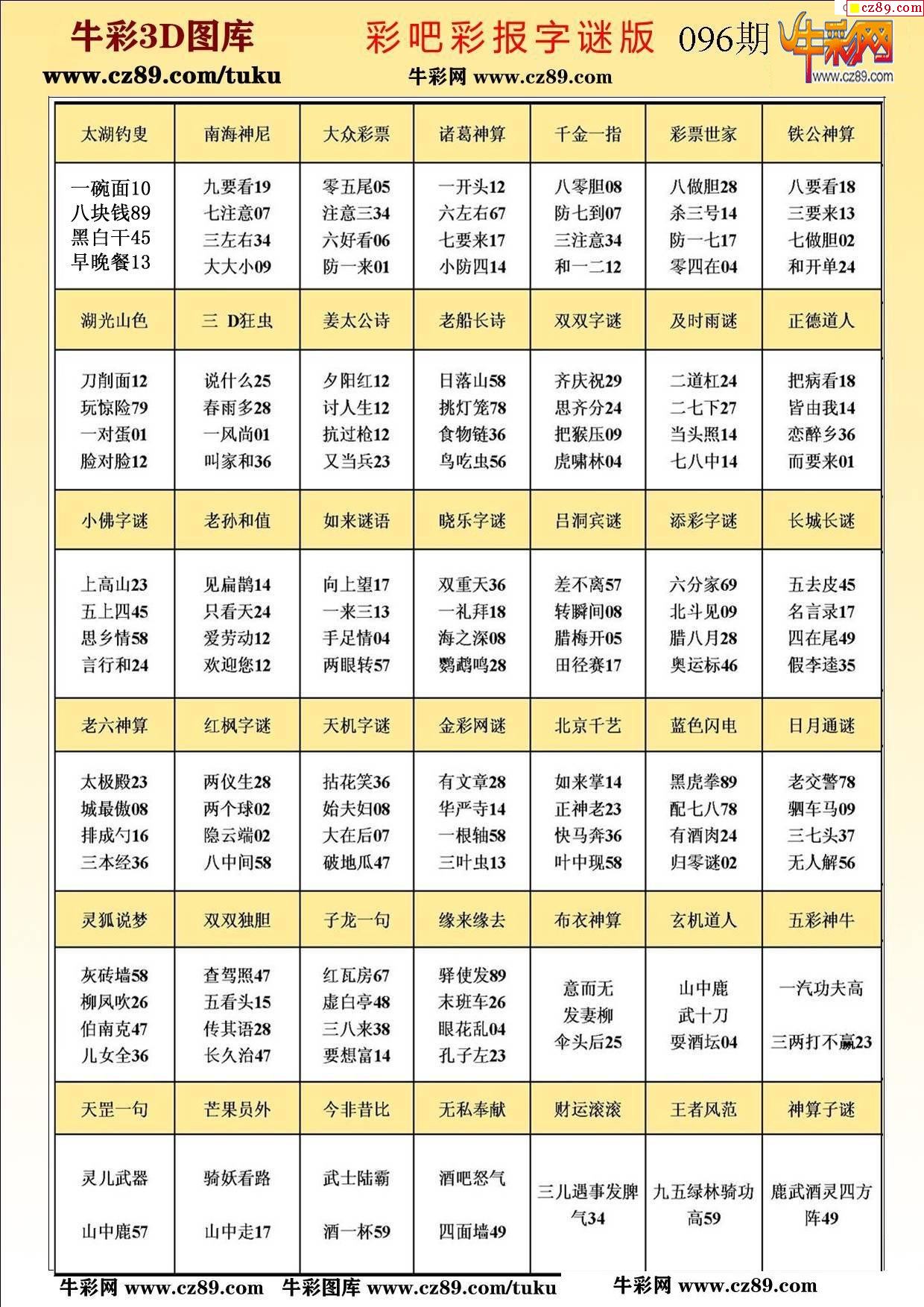 牛彩版3D字谜彩报图26年096期打印版