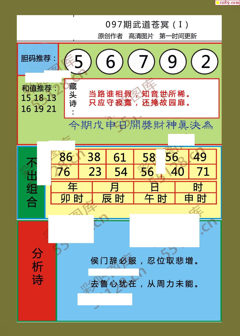 武盟独星锤26年097期3D图谜