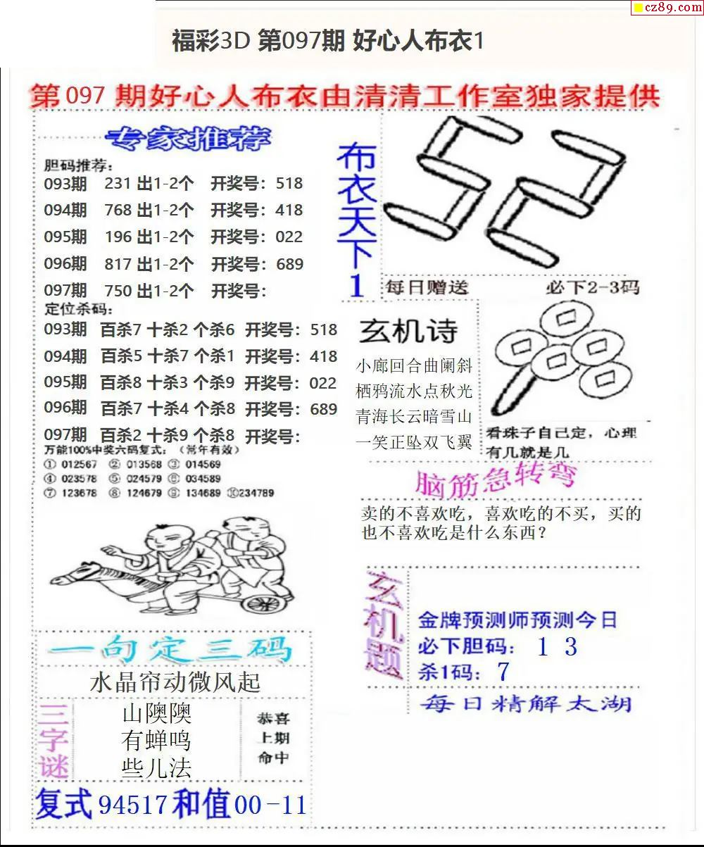 好心布衣2026097期3d图谜