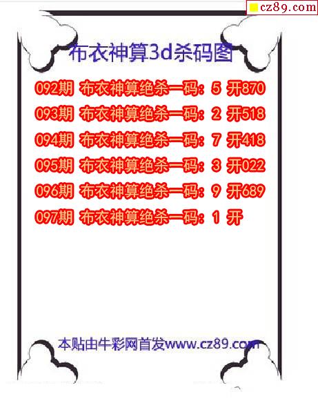 吕布杀码2026097期今日3d图谜