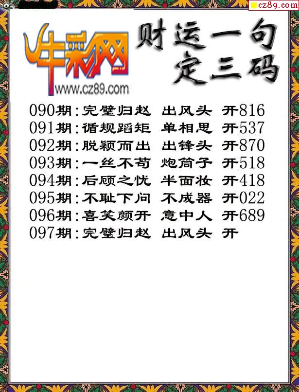 福彩3D2026097期牛彩图谜预测汇总