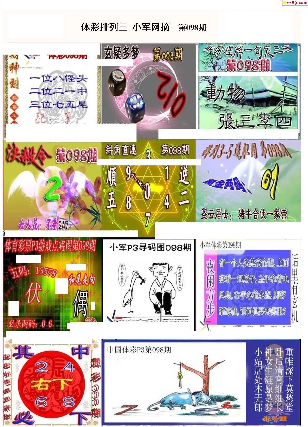 2026年098期牛彩网体彩P3画迷图谜汇总分享