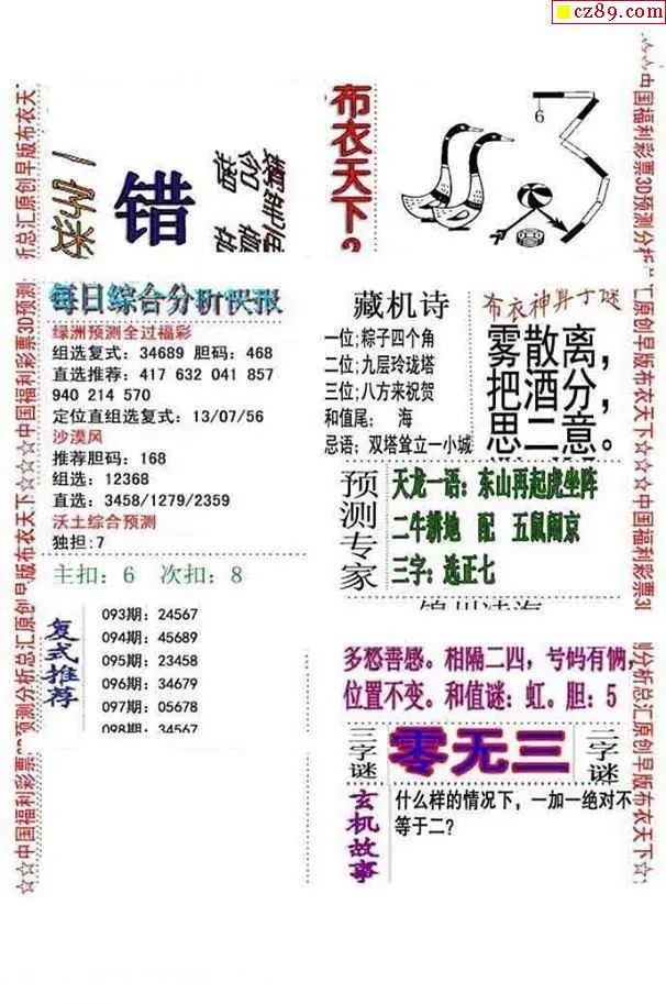 2026098期3D图谜汇总(二)