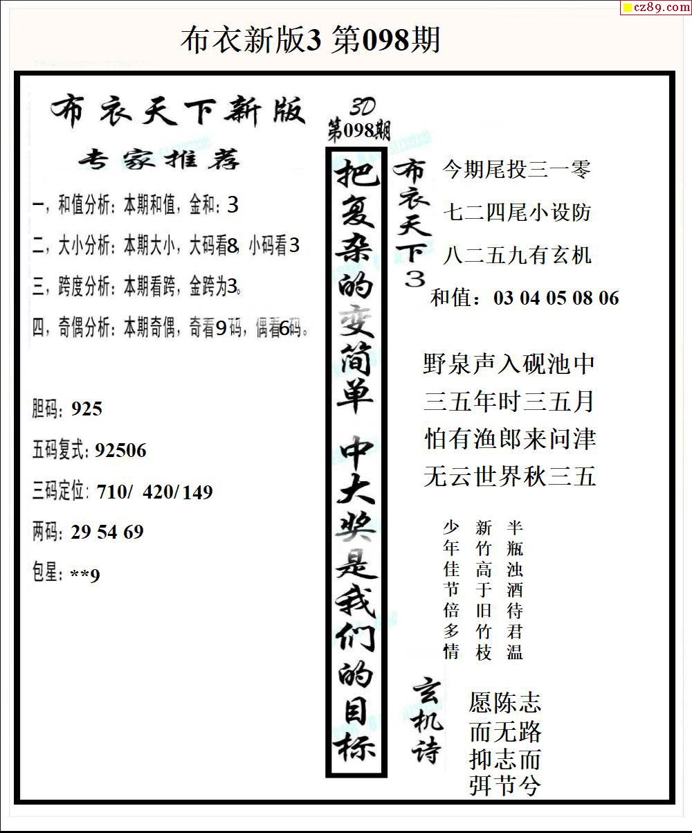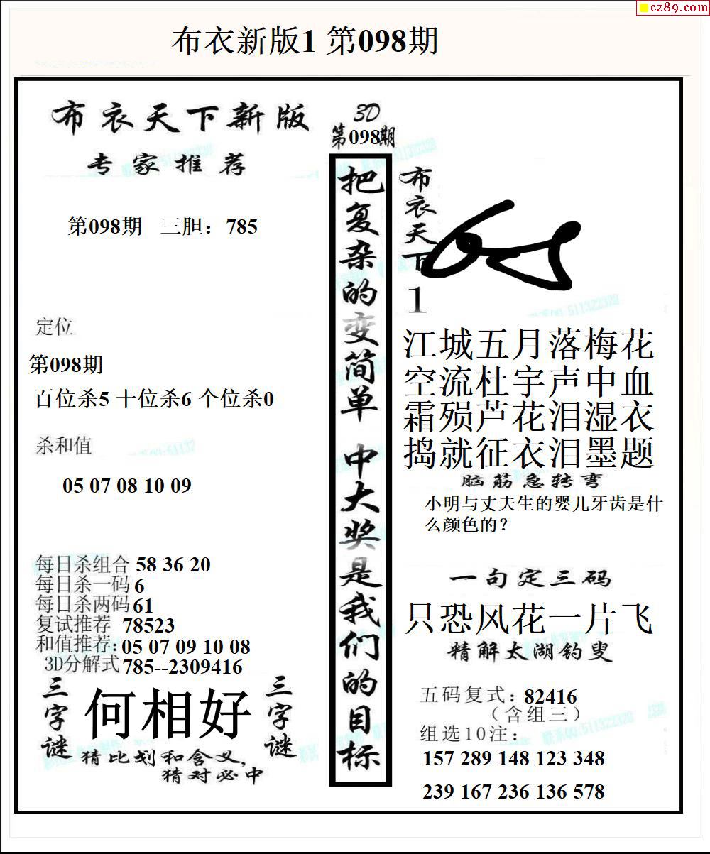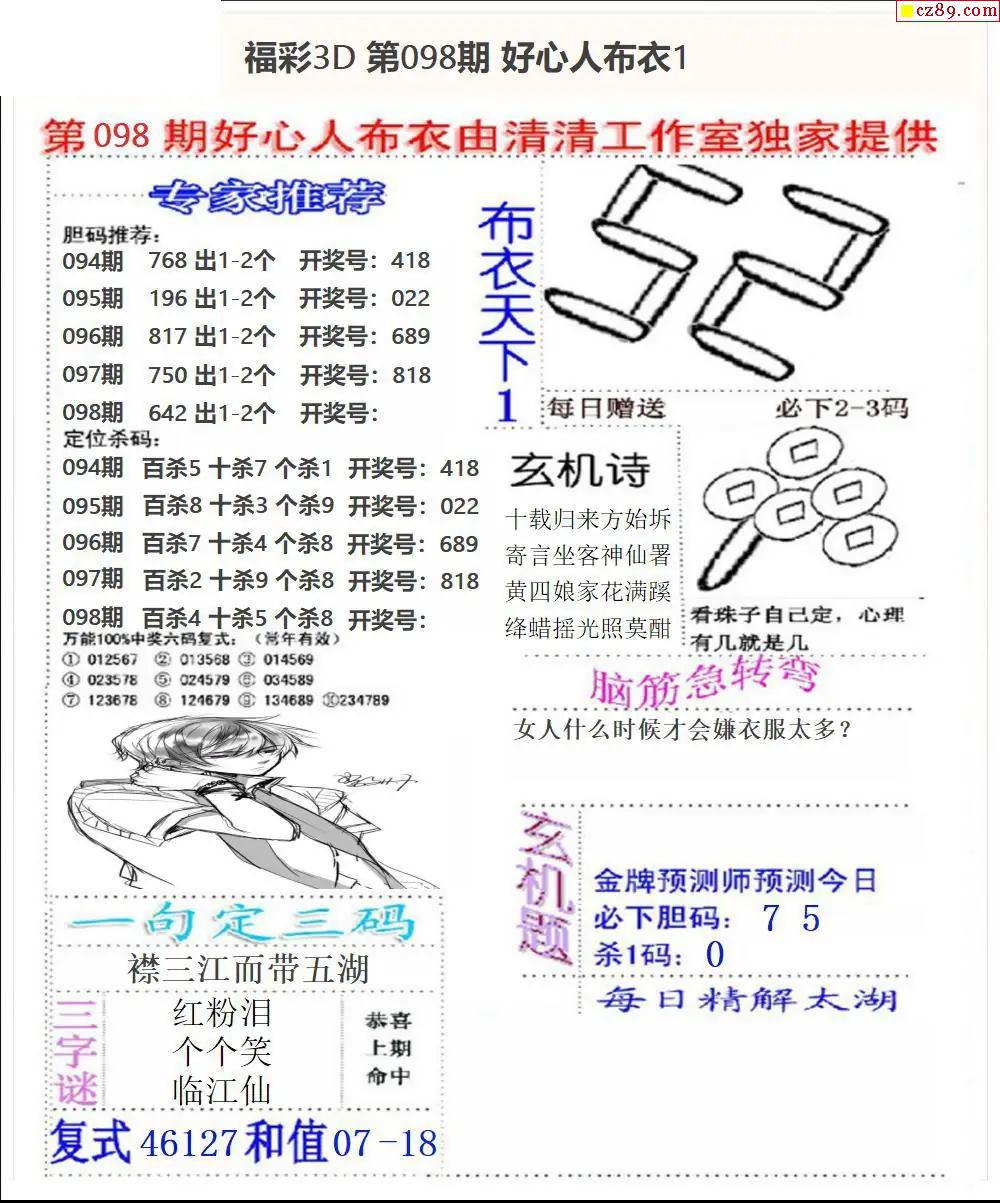 2026098期3D图谜汇总(一)