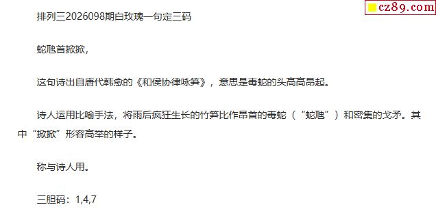 白玫瑰排三一句定三码26年098期