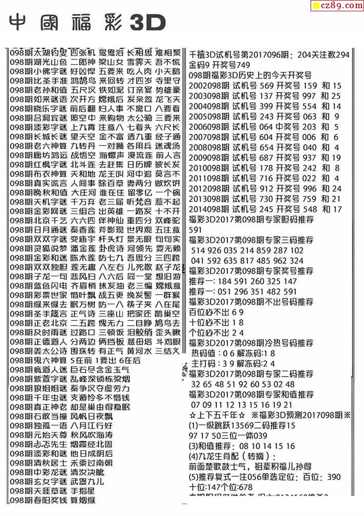 2026098期福彩3D图谜汇总