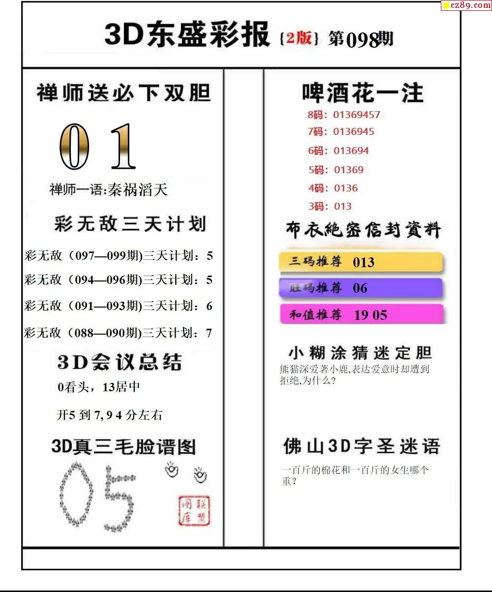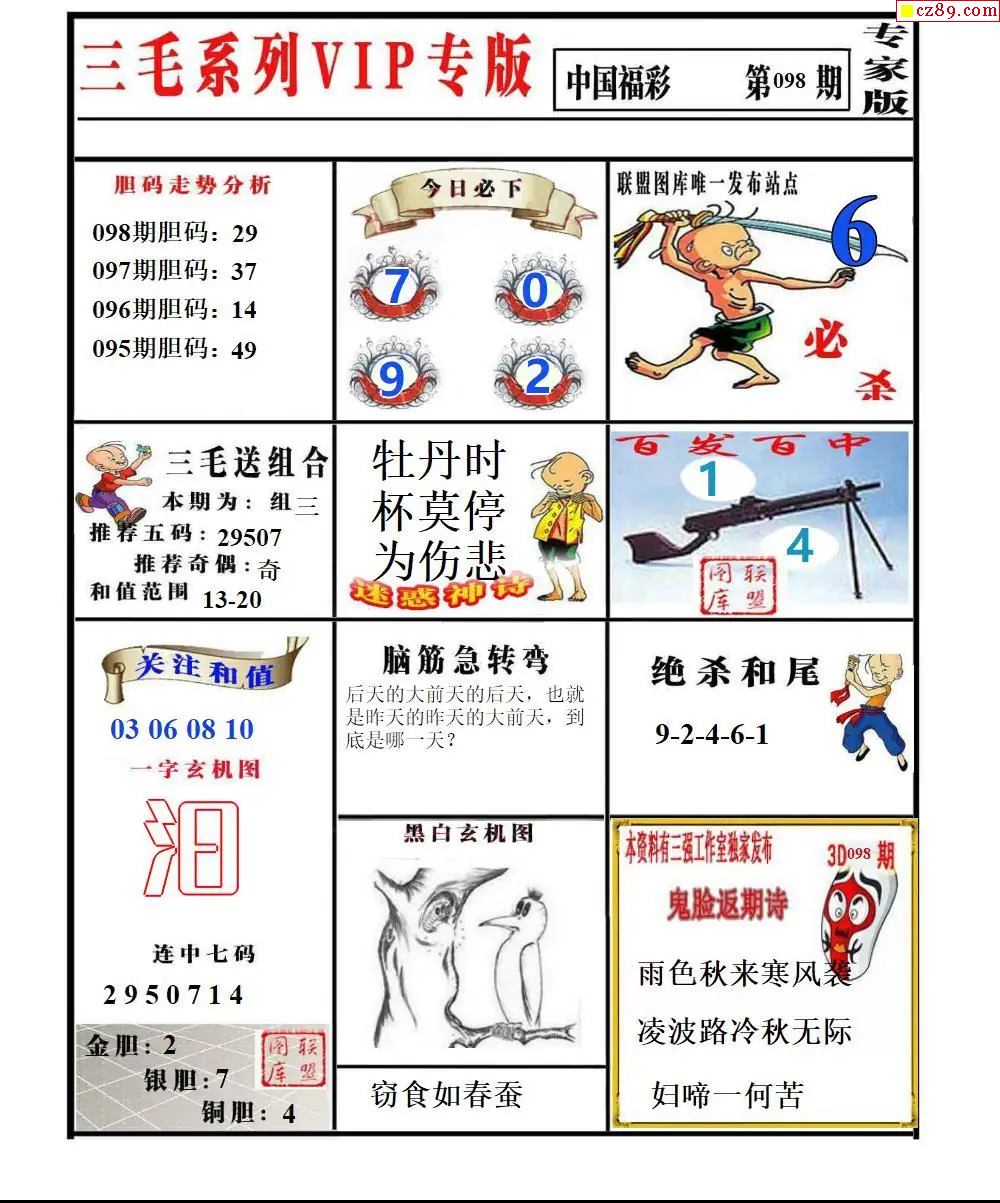 福彩3D2026098期东盛彩报+精品三毛会员版