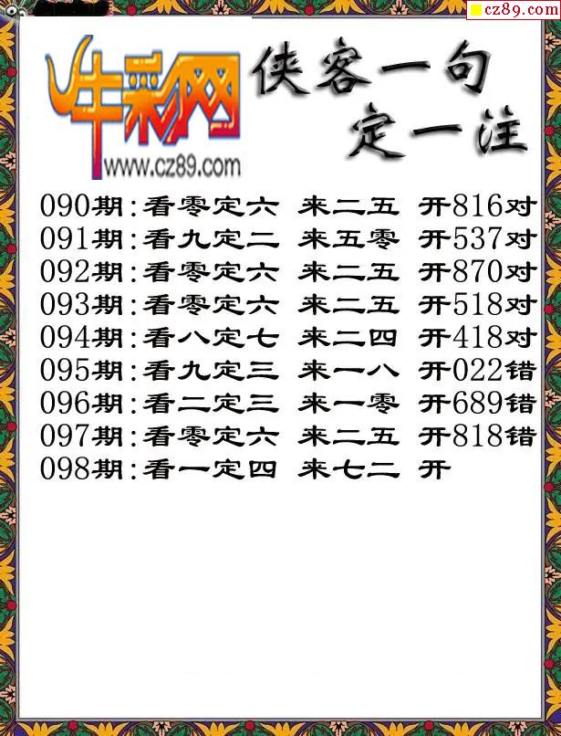 福彩3D2026098期侠客一句定三码字图谜