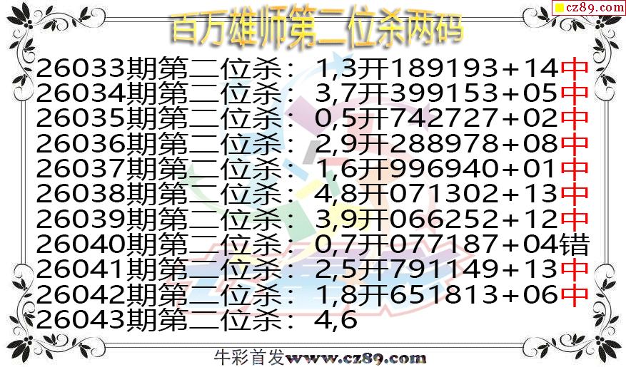 七星彩2026043期百万雄师第二位杀两码图谜 10中9