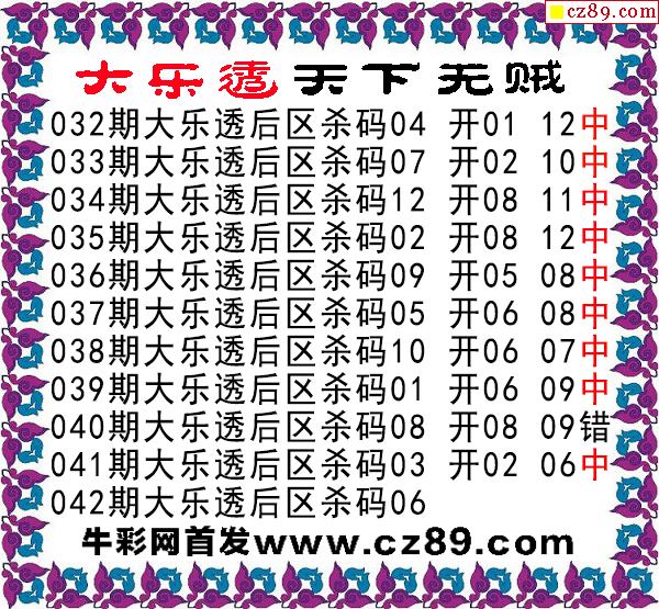 大乐透2026042期天下无贼后区杀号图谜 10中9