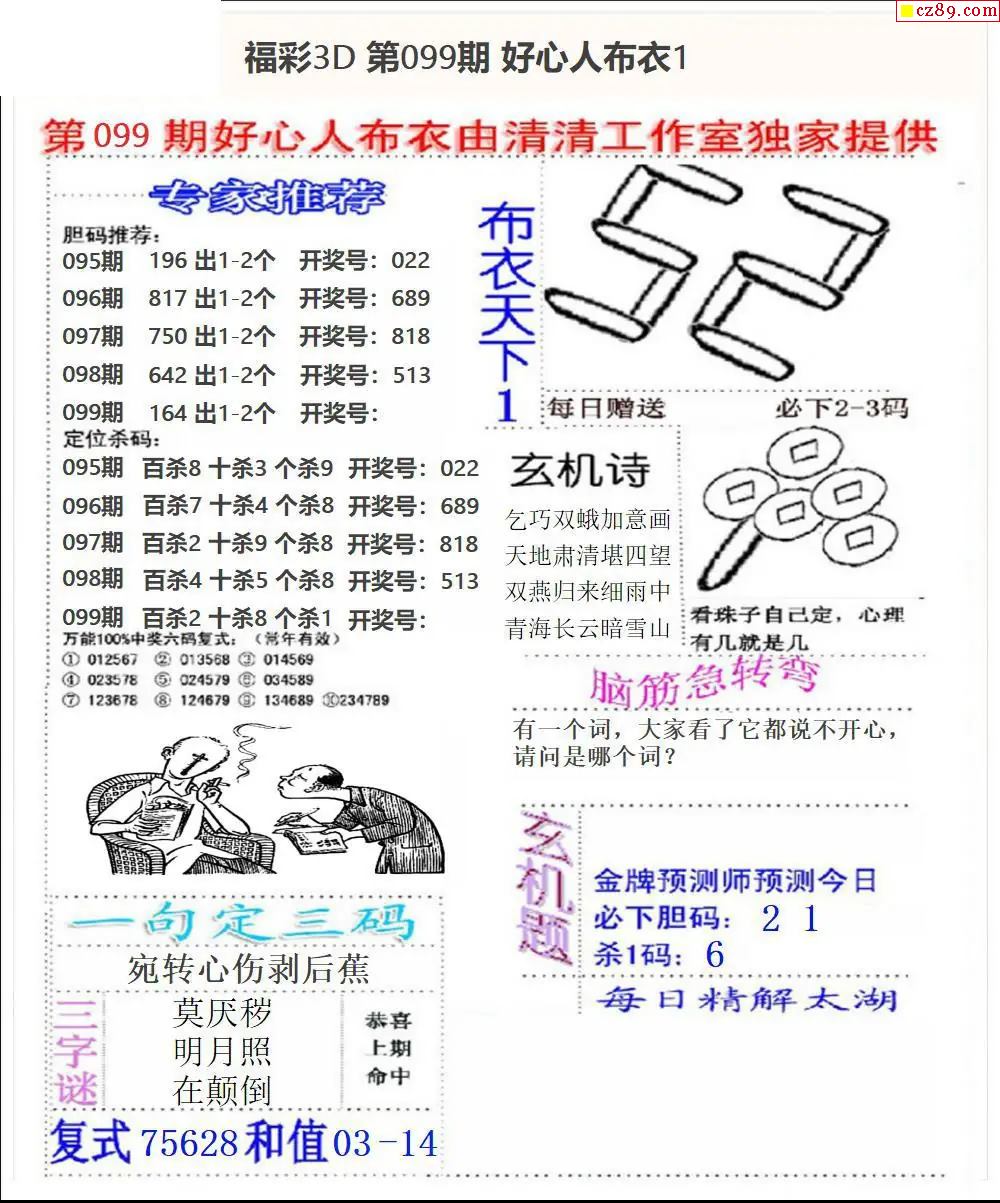 2026099期3d字谜图谜总汇