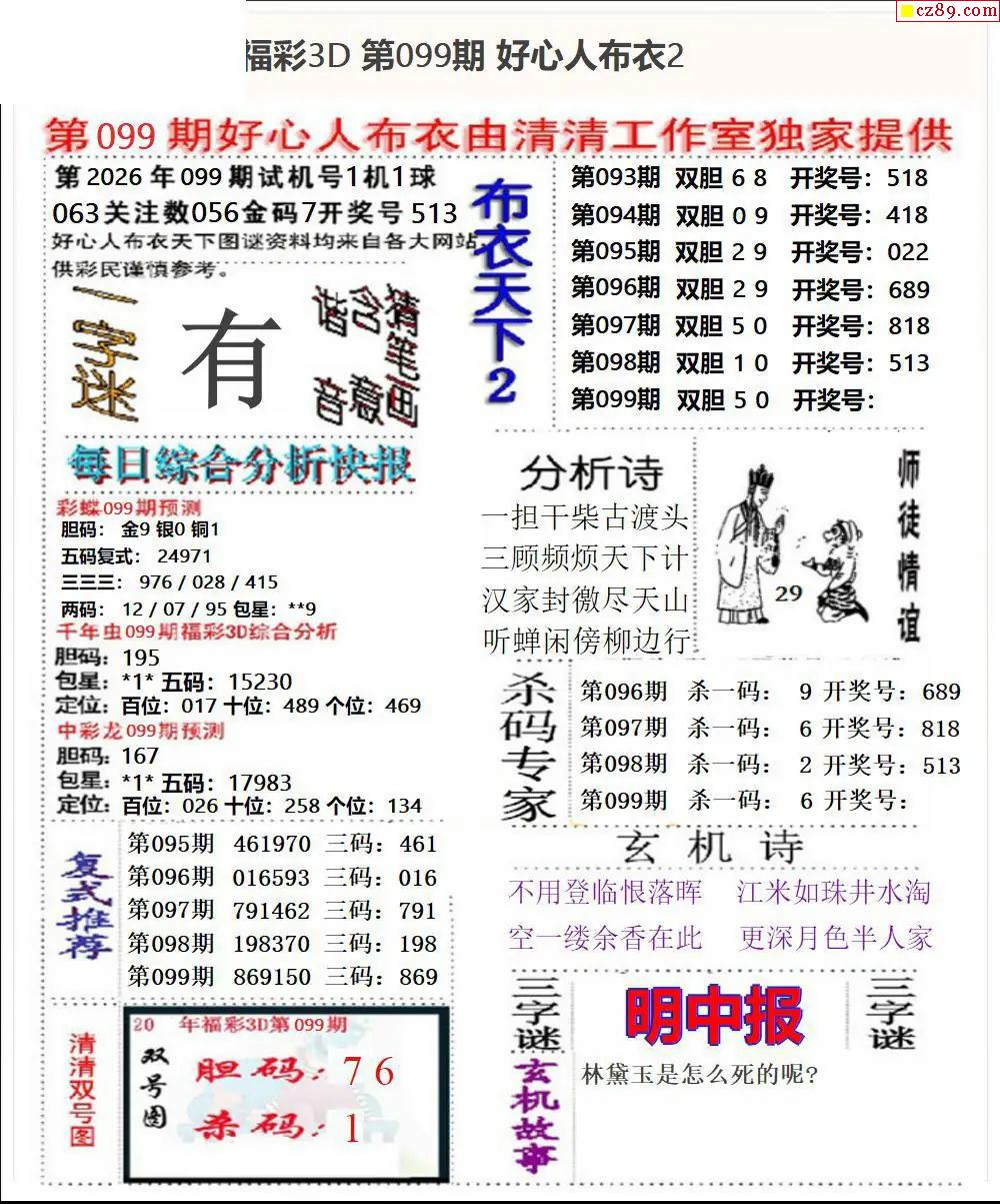 2026099期3d图谜汇总(五)
