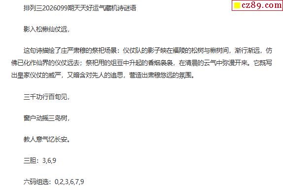 2026年藏机图099期 正版体彩P3藏机图诗汇总
