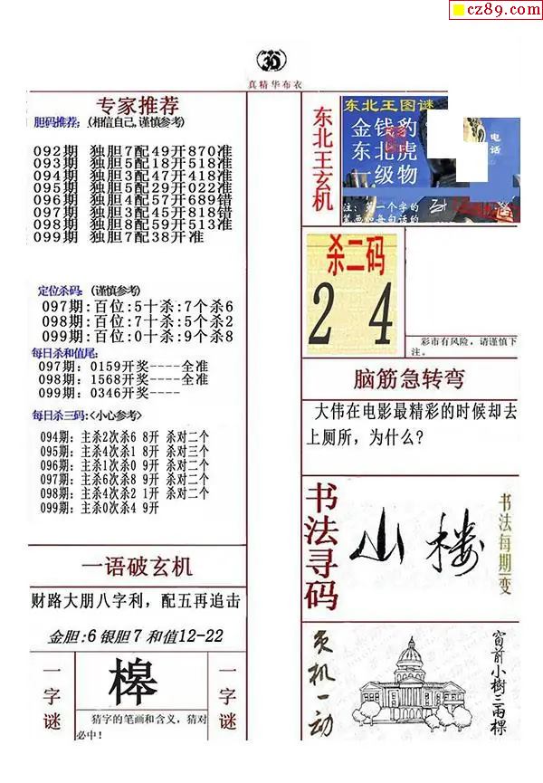 牛彩版3D字谜彩报图26年099期打印版
