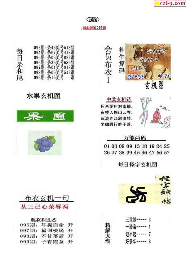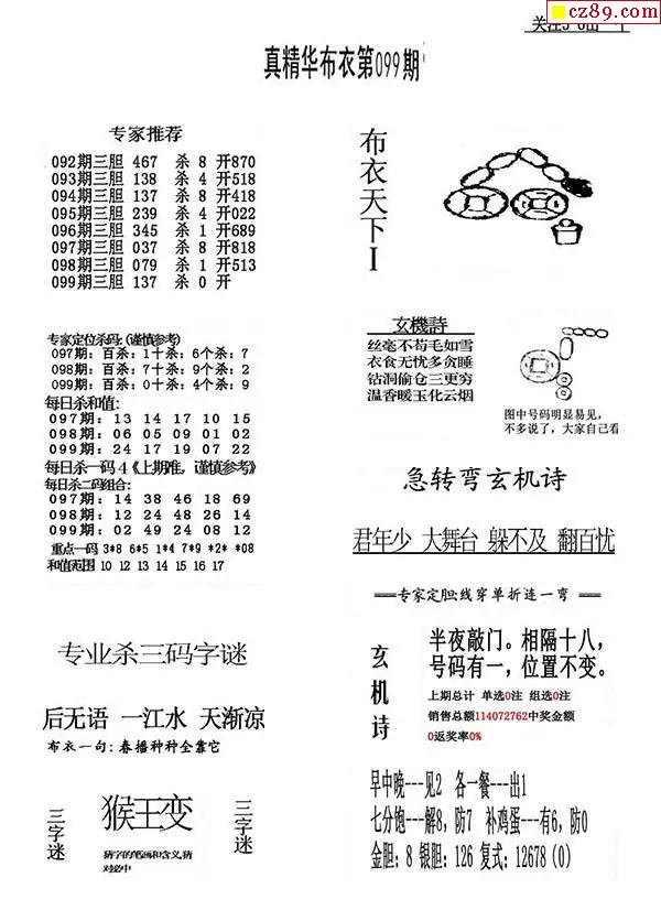 2026099期真精华布衣123456