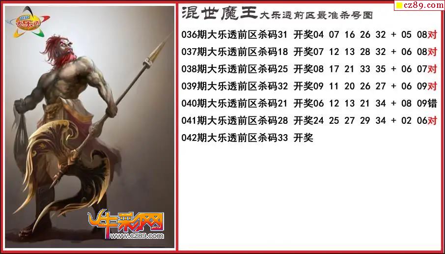 大乐透042期程咬金前区精准杀号图