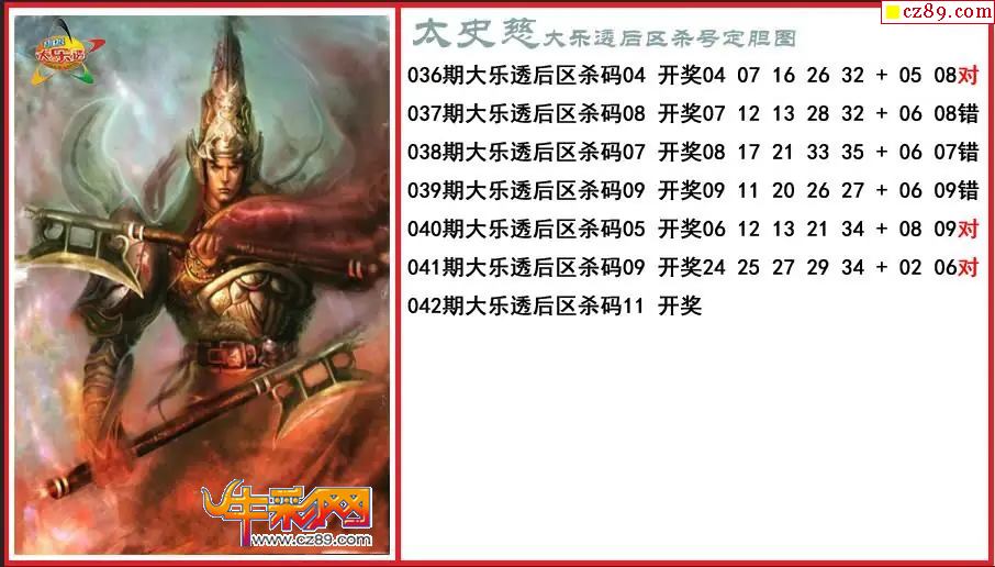 大乐透042期太史慈后区杀号定胆图
