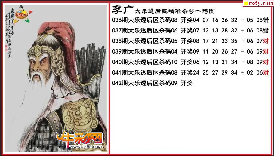 大乐透042期李广后区精准杀号一码图