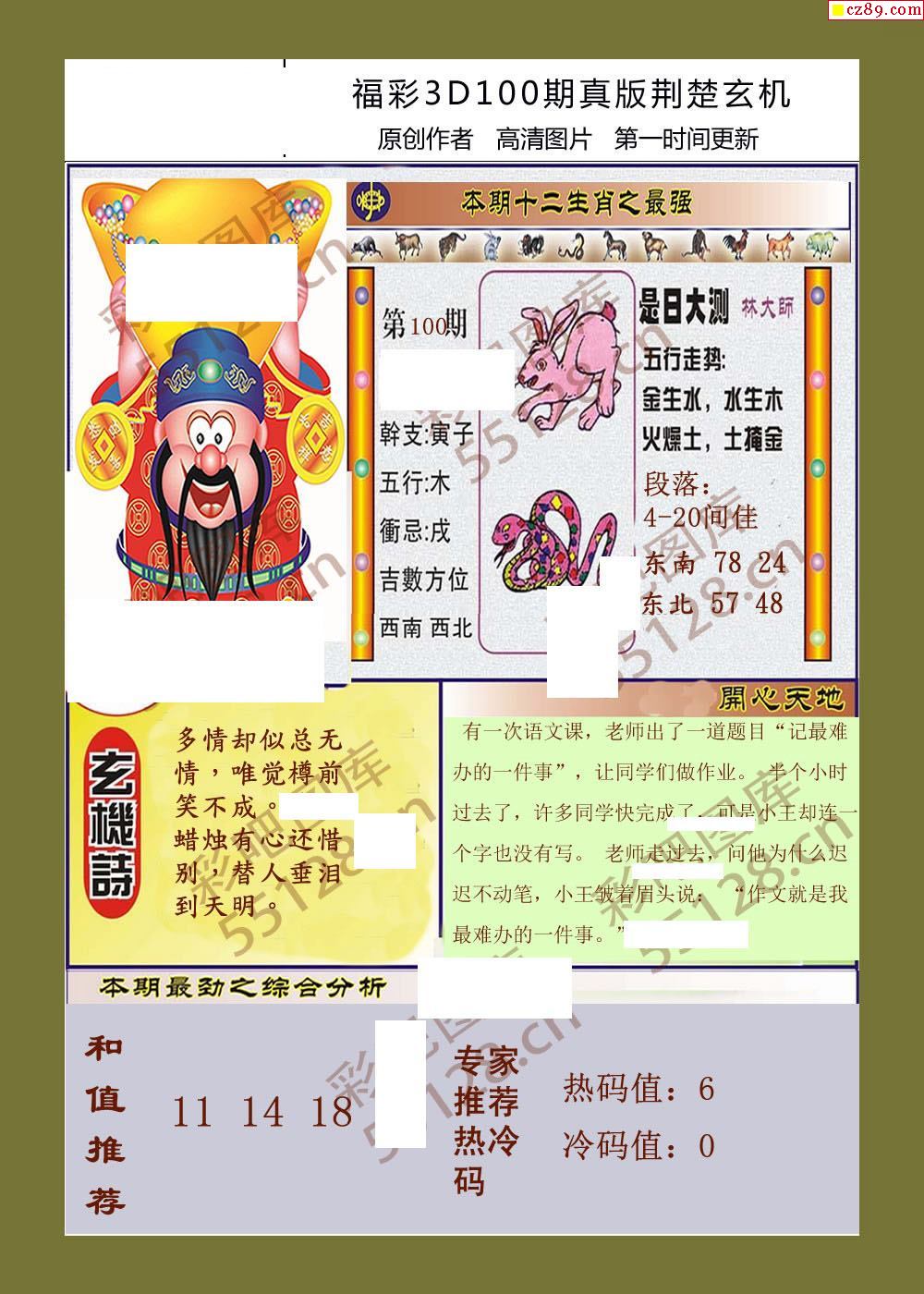 26福彩3d100期真版荆楚玄机彩报
