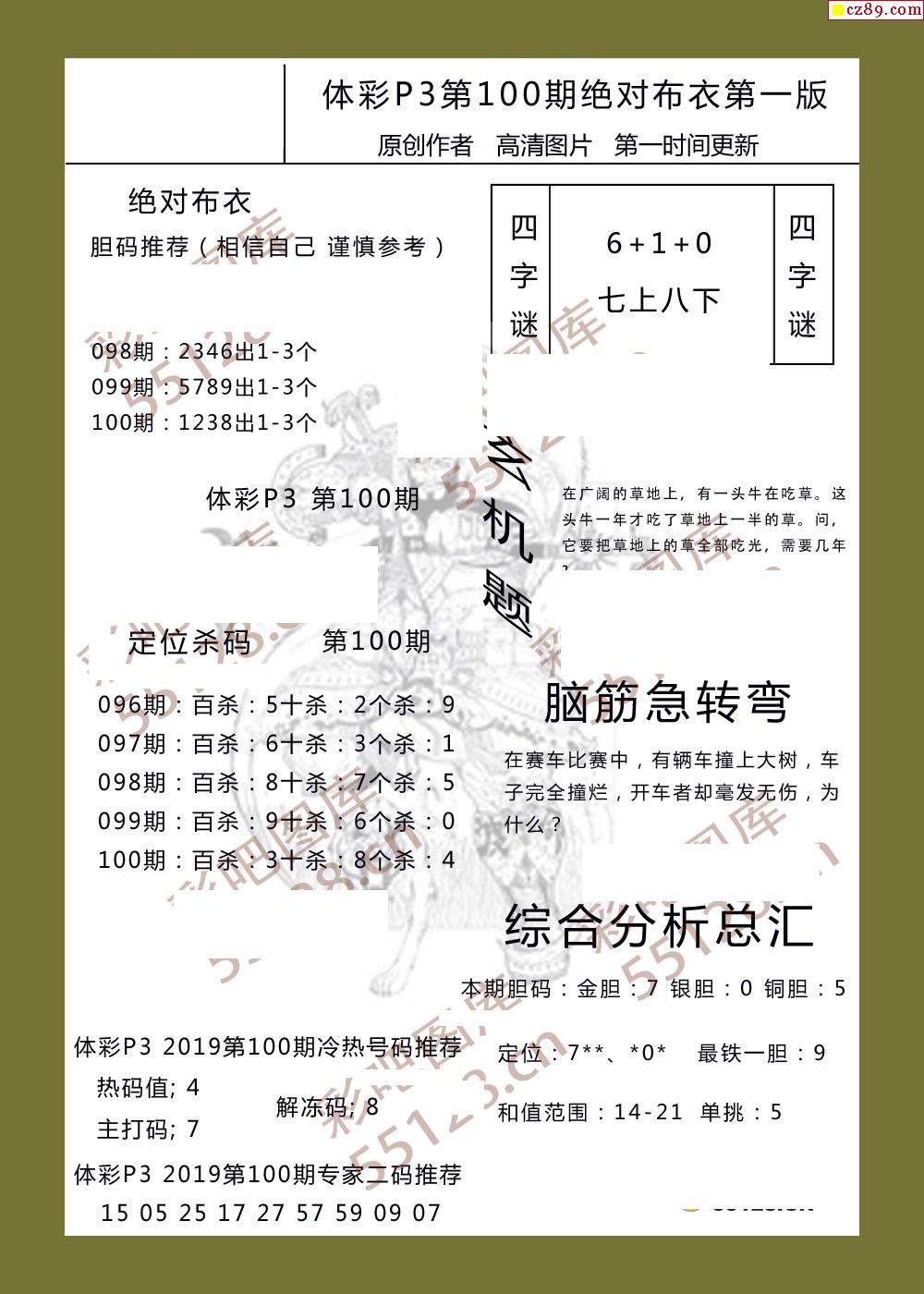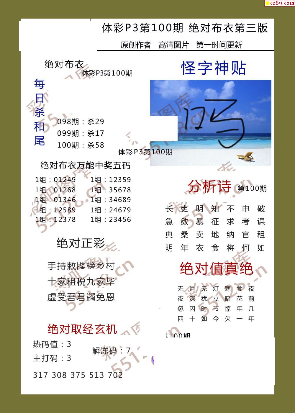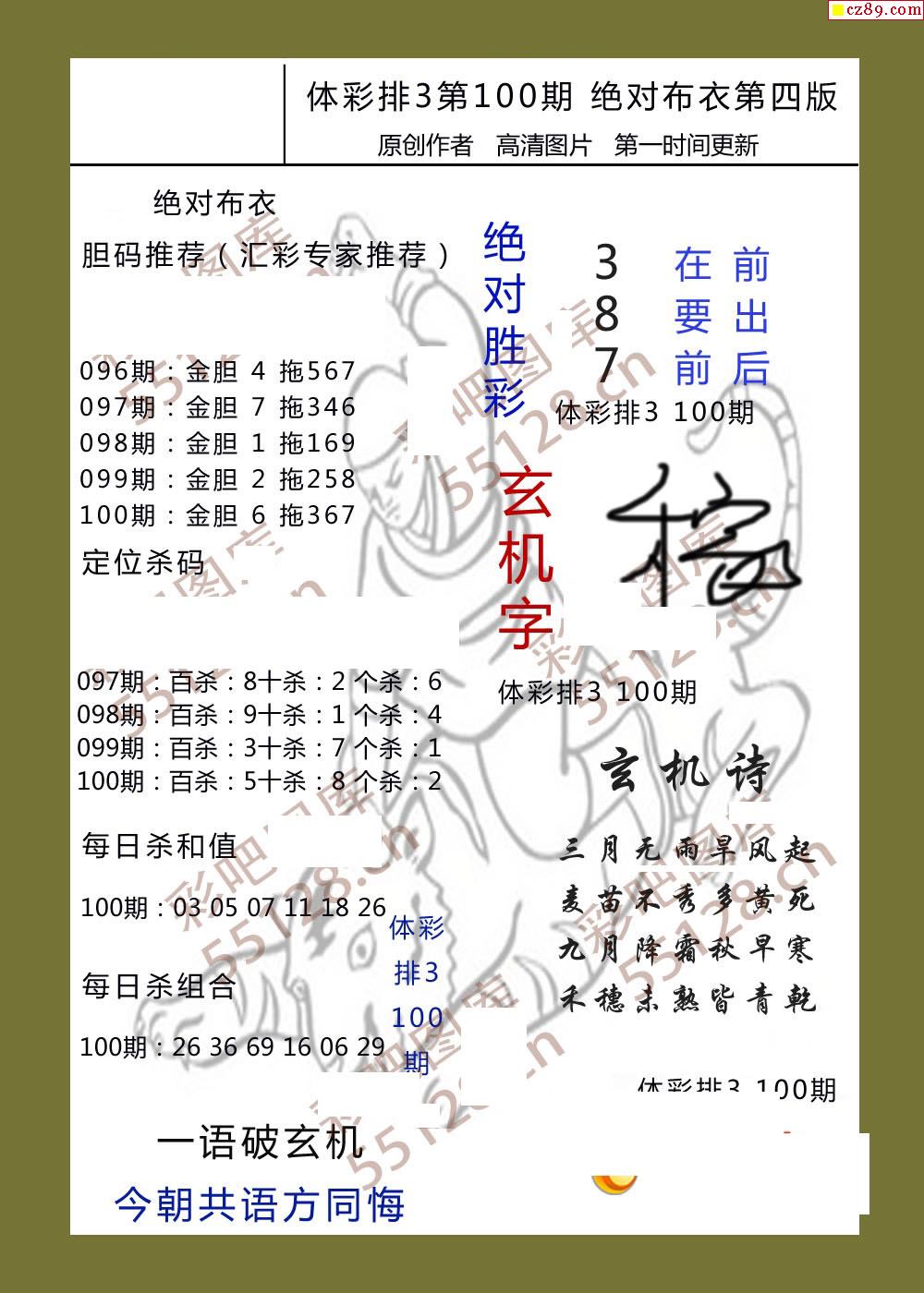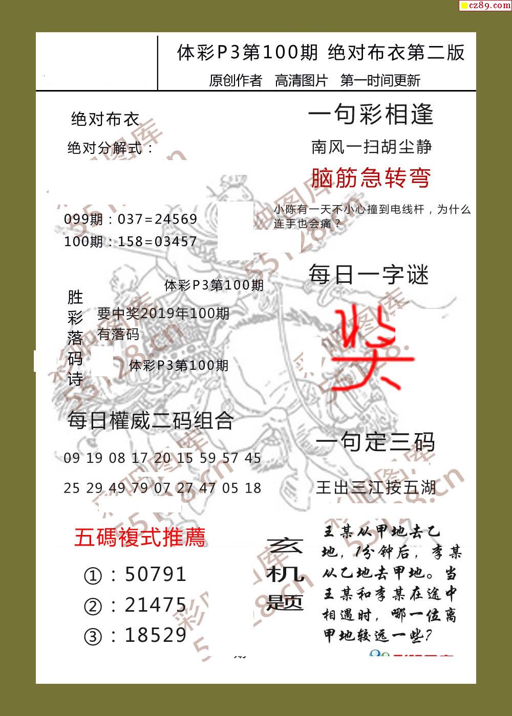 绝对布衣100期体彩p3图谜