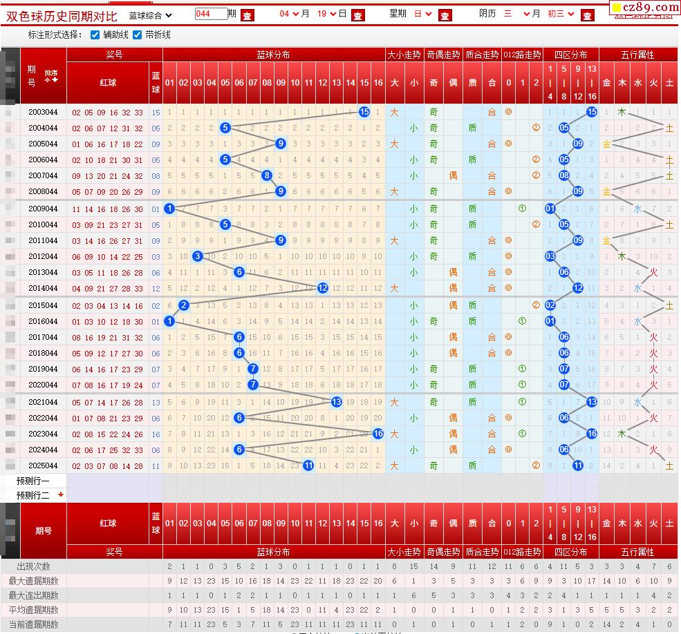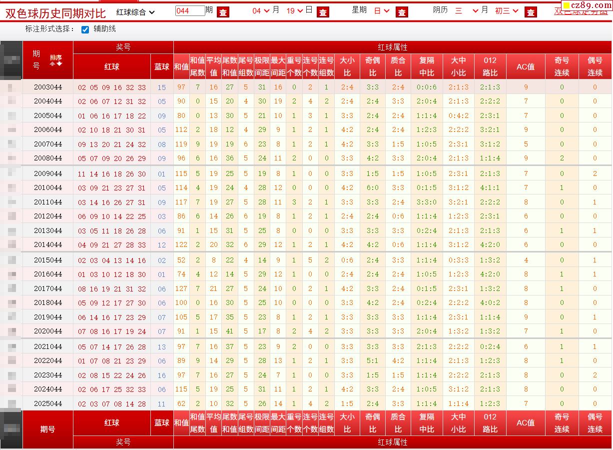 044期双色球历史同期对比图