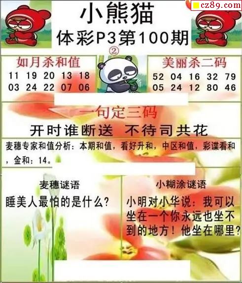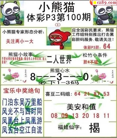 小熊猫2026100期体彩P3图谜