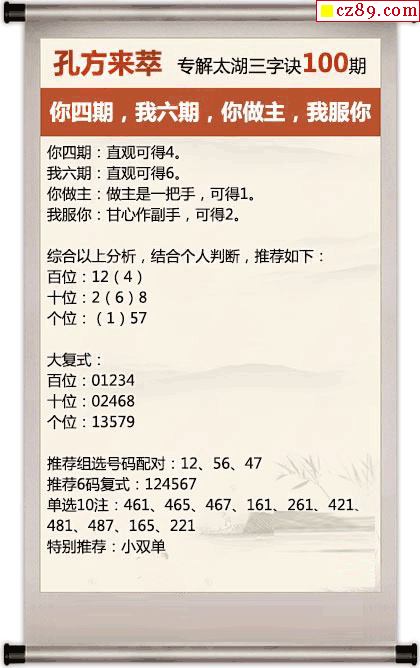 26年100期牛彩版解太湖钓叟三字诀今日汇总