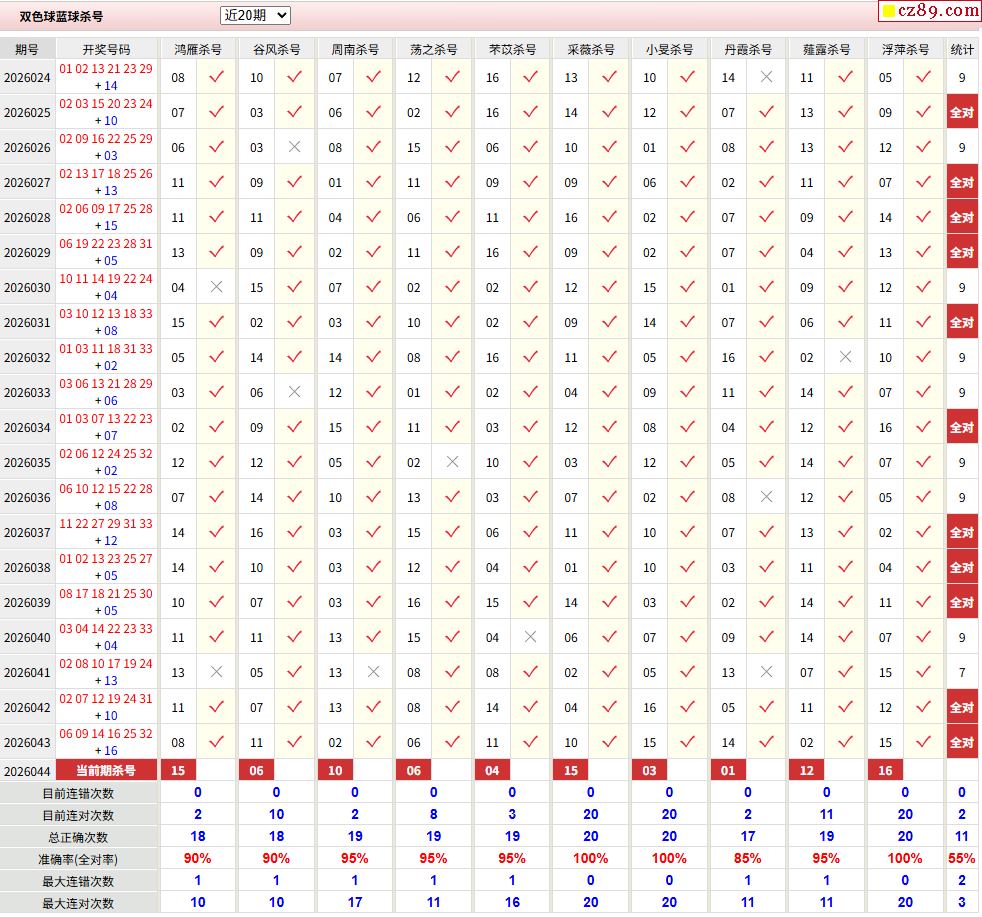 双色球044期 枣庄红人杀蓝球图迷 10中9