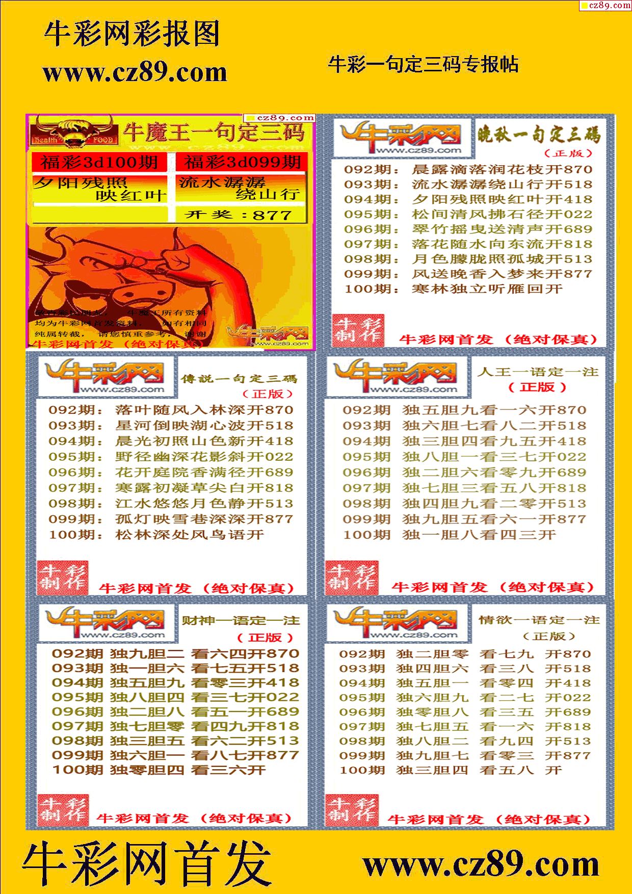 2026100期牛彩专家一句定三码彩报