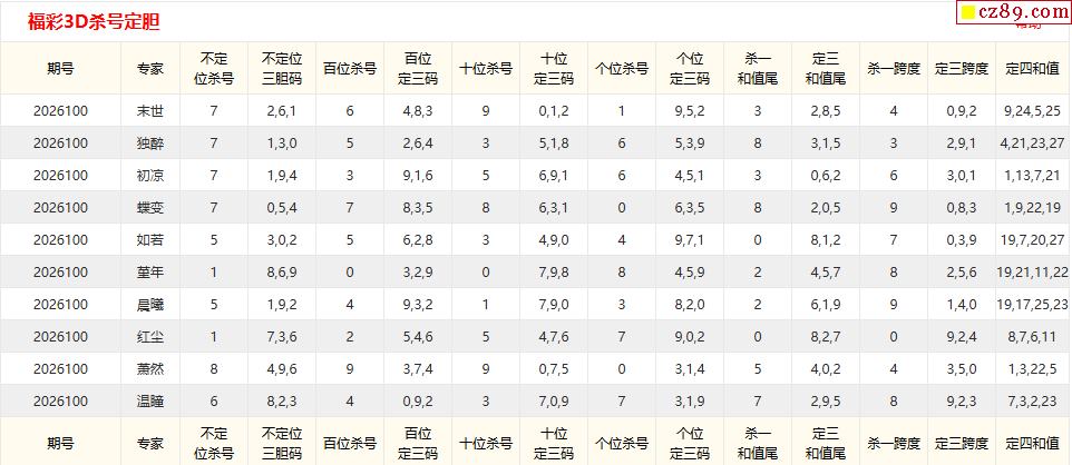 26年100期彩宝贝专家福彩3D杀号定码图表