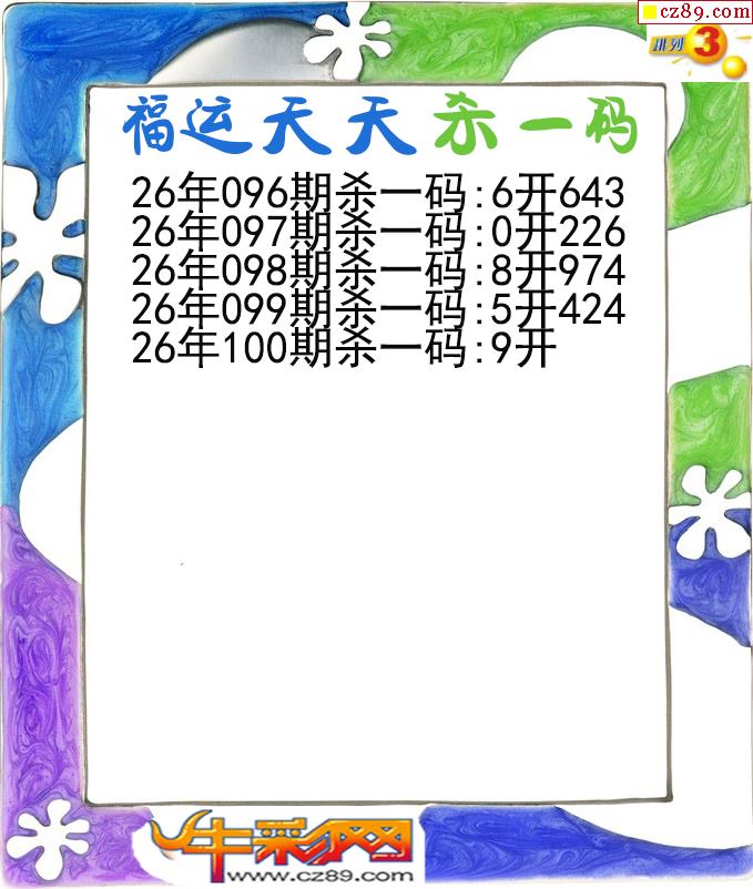 福运天天杀一码100期体彩P3图谜