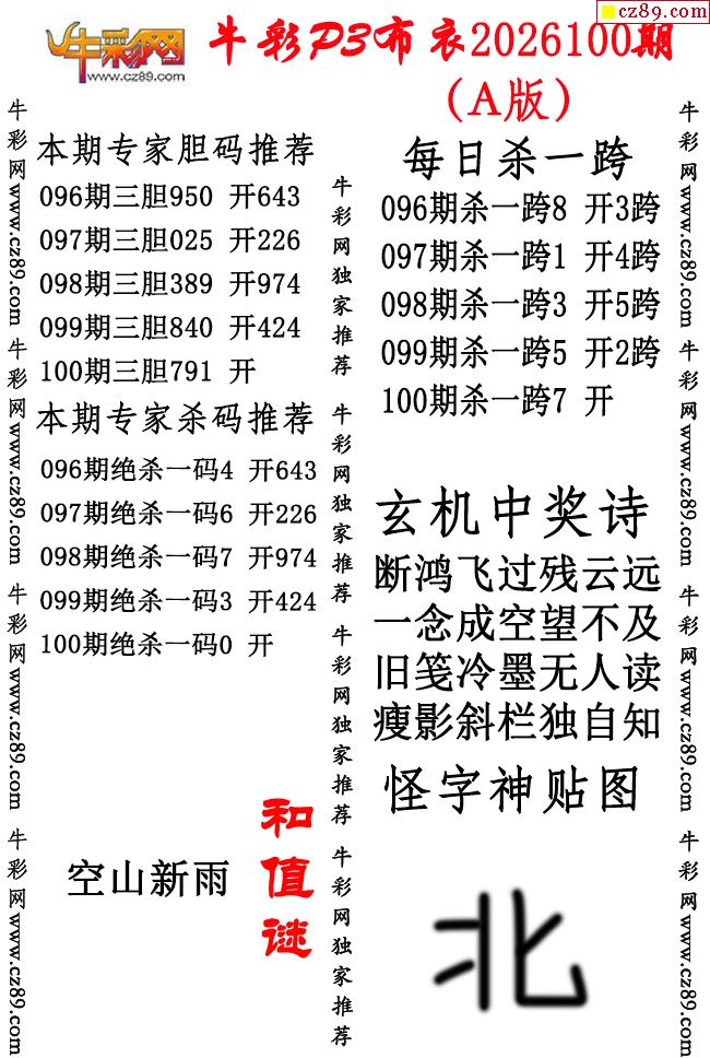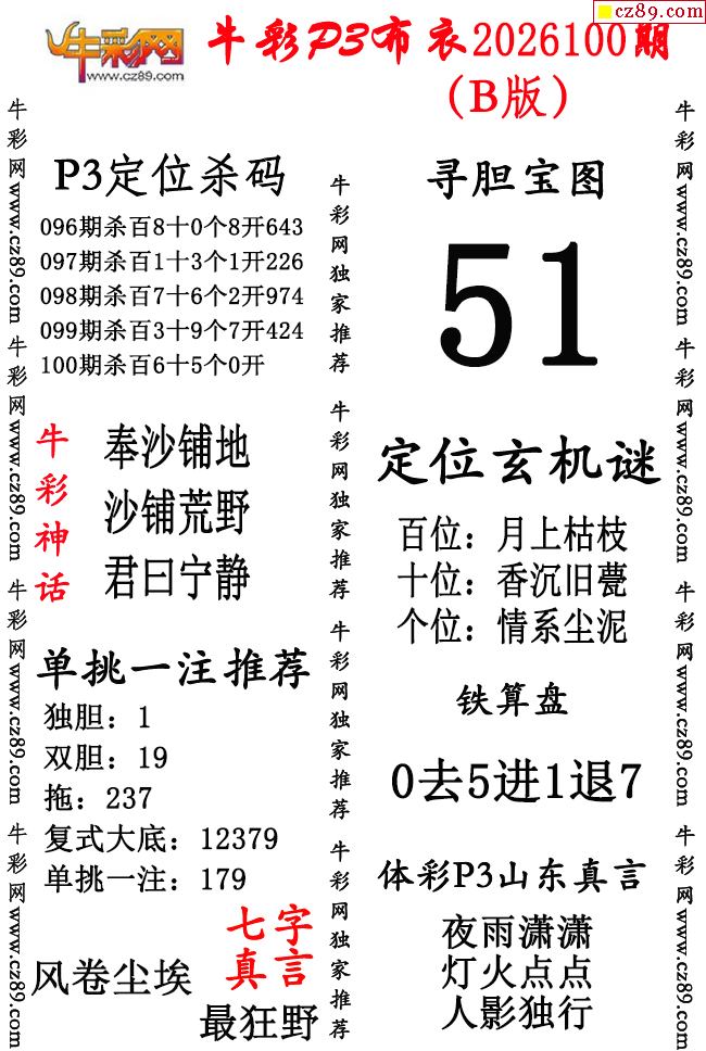 牛彩P3布衣26年100期AB版图谜(精华版)