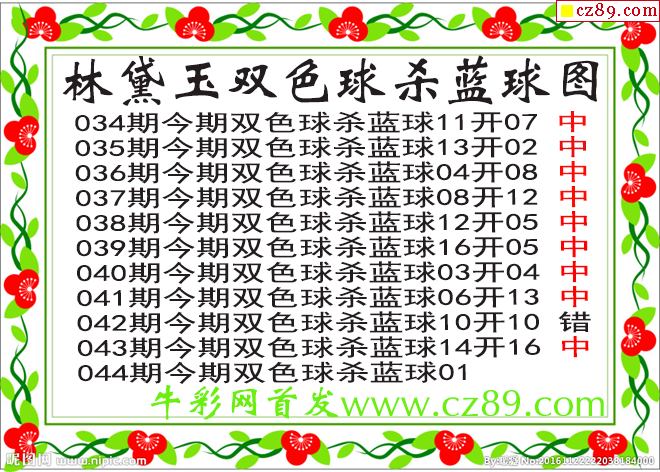 双色球044期 林黛玉杀蓝号图谜 10中9