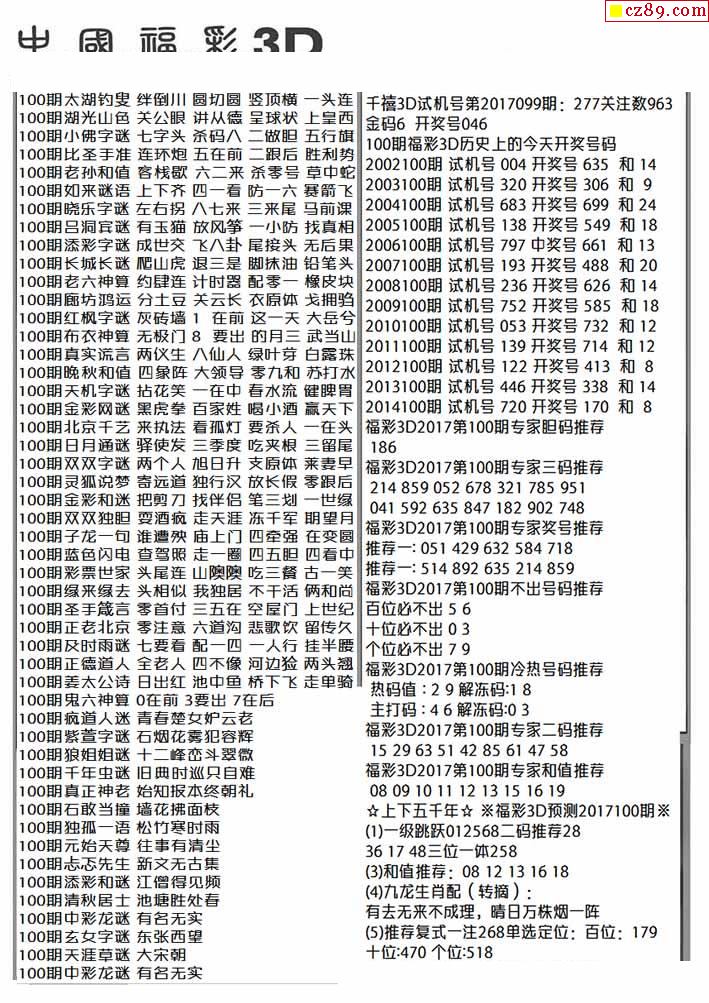 牛彩版3D字谜彩报图26年101期打印版