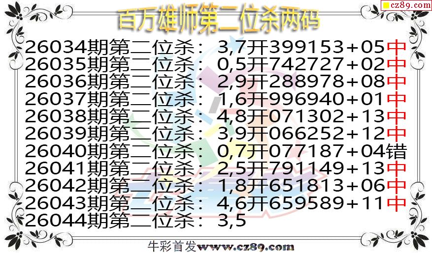 七星彩2026044期百万雄师第二位杀两码图谜 10中9