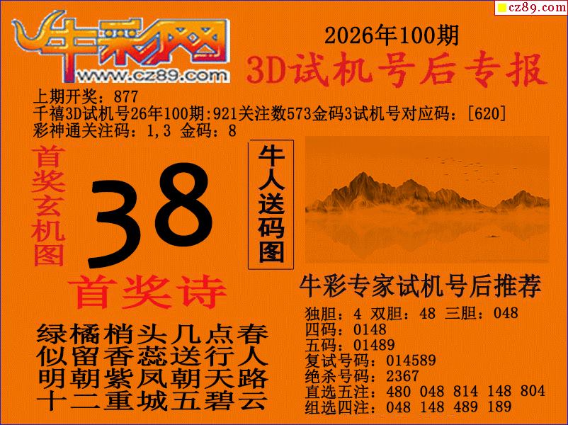 牛彩版3D预测彩报图26年100期打印版